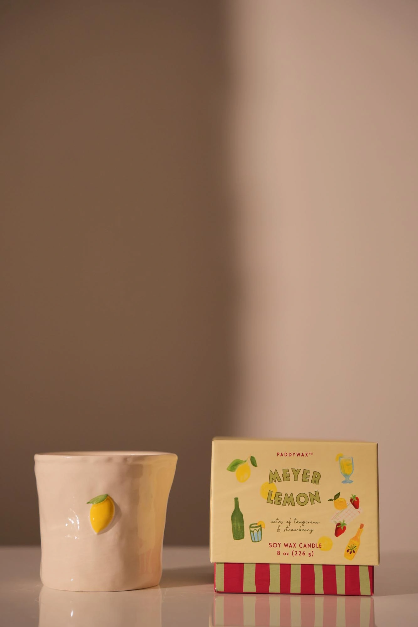 Bistro 8oz/226g Lemon Embossed Ceramic 9x9x8.5 cm Candle – Meyer Lemon Boxed