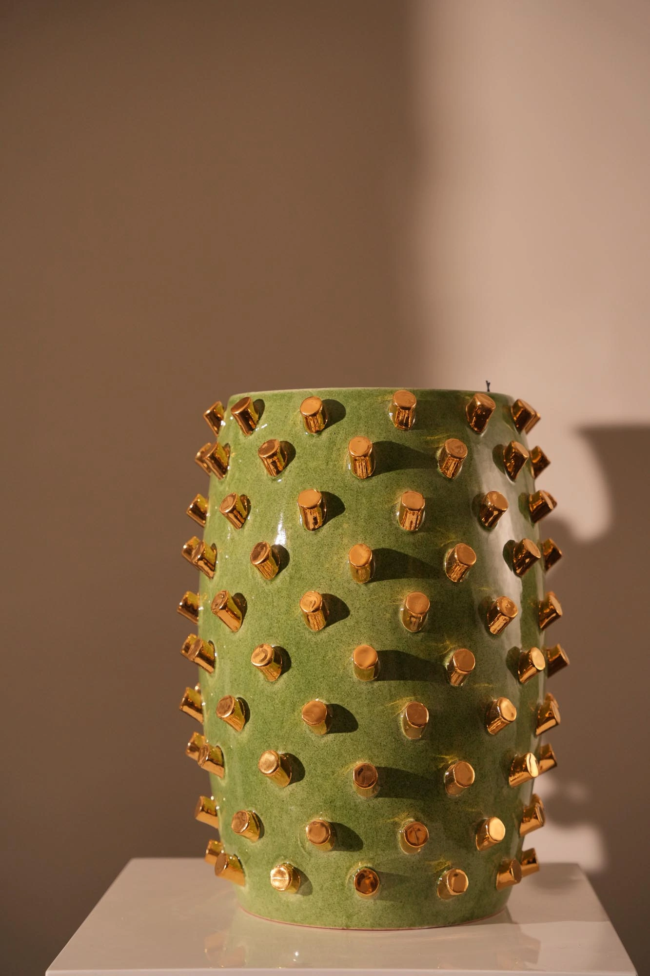 SAGE GREEN VASE WITH GOLDEN LIPSTICKS